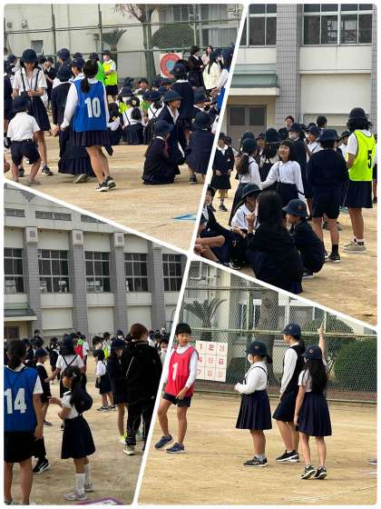 集会委員が言った文字数のグループをつくるゲームです。近くの人と声を掛け合いながら、楽しんでいました。