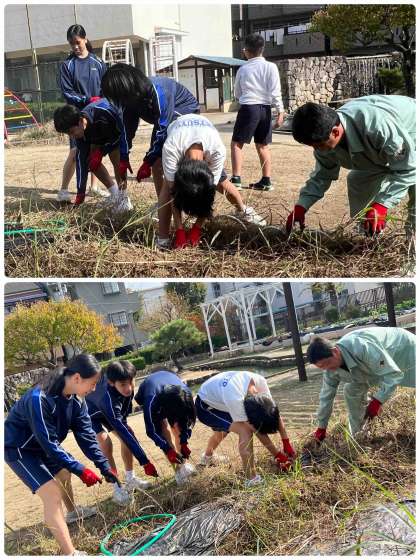 外周の清掃や学習園の手入れなど、いろいろ頑張っていました。