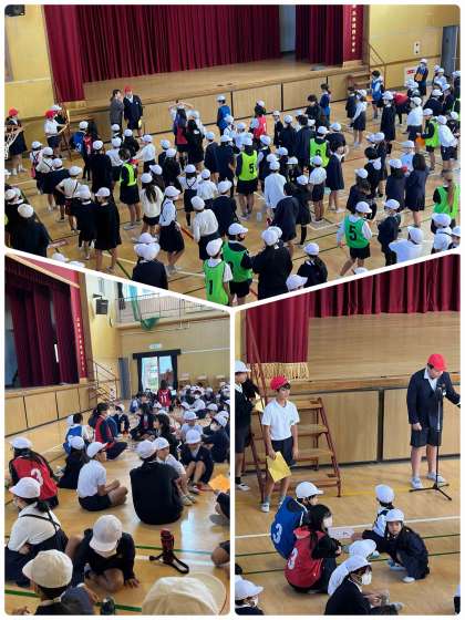 たてわり班ごとに集まり、今日のめあてや流れなどを説明しました。