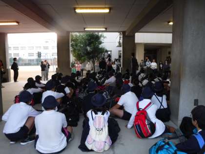 たくさんの保護者の方々に見守られ、立派に出発式をしていました。