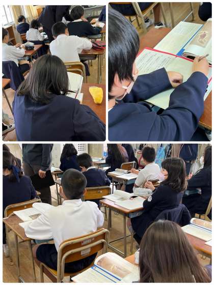 国語の「ごんぎつね」を教材に、物語を1文で表すとどうなるかについて取り組み、登場人物の変容を捉えながら、考えました。