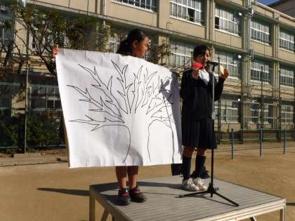 10月26日(月)の全校朝会で、図書委員会から「読書の木」について連絡がありました。
