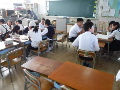 担当の先生の教室に集まって、たてわり班で話し合いました。メンバーを確認したり、回る順番を決めていったり、役割を決めたりしてきました。
