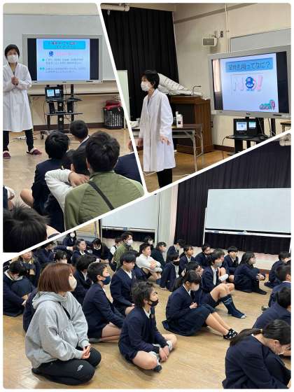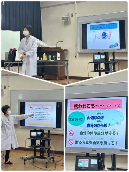 学校薬剤師さんが来られて、6年生に薬についての授業がありました。