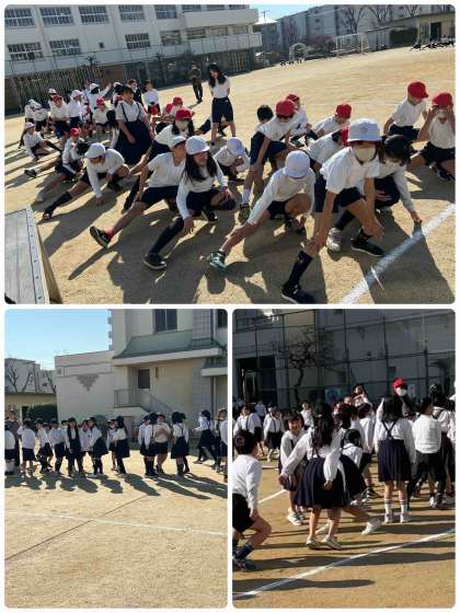 今日から、かけ足週間が始まりました。休み時間に学年に分かれて運動場を走ります。