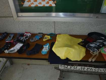 写真は落とし物の写真です。お心当たりの方は、玄関ホールに並べていますのでご確認ください。