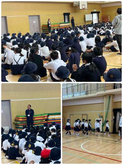 子どもたちは、迅速に集合し、真剣に先生の話を聞いていました。安全に避難できるように。そして、日ごろから防災の意識を高めていけるように、今後も訓練を続けていきます。