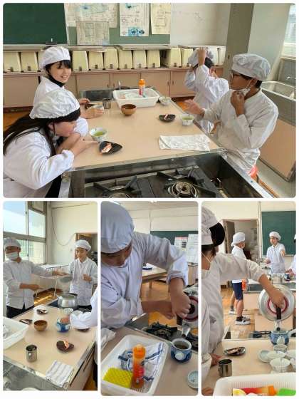「わかした湯を使ったお茶の入れ方」の学習をしている5年生。