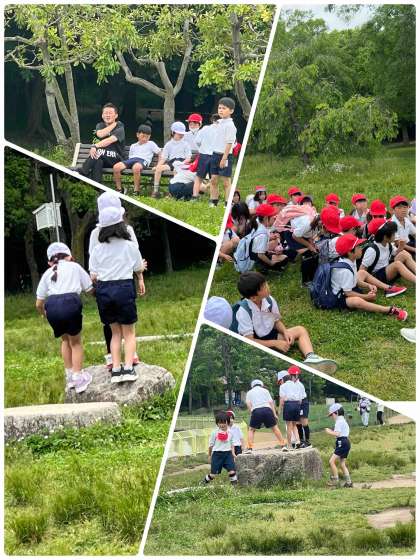 公園では、芝生で楽しく遊んだり、おいしいお弁当を食べたりと、充実した時間となりました。また、昼食後は、自然史博物館の見学をしました。大きな展示物が多数あり、興味津々に見ていました。