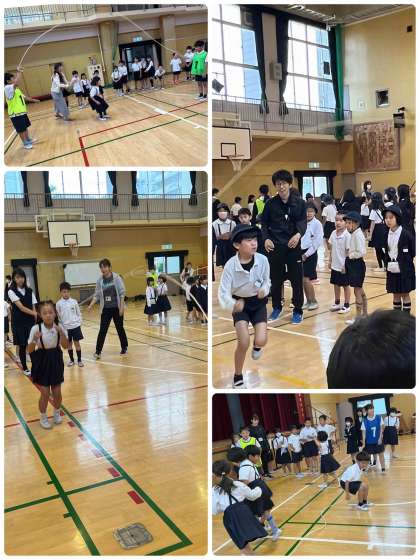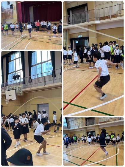 6年生を中心に縄を回していました。1年生が跳びやすいように工夫しながら回しているのが印象的でした。