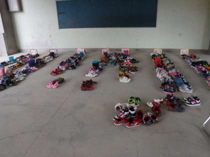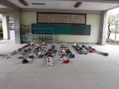 学級ごとにピロティで上靴を脱いで並べてから、講堂に入ります。いつもきれいに整列していて、とっても気持ちいい眺めです。このような躾も大切にしていきたいですね。