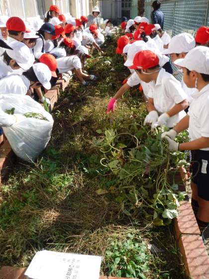 11月17日(月)2年生が学習園で育てたサツマイモを収穫していました。