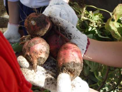 みんなで力を合わせて蔓を引っ張って(『大きなかぶ』のお話のような姿でした)いました。