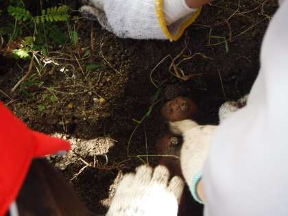 土の中からイモが姿を見せると、嬉しそうな歓声が上がっていました。