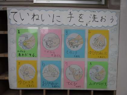 きっちり手洗い・うがいをして、風邪などを引かないようなど、自分の健康について気をつける習慣がつくように、今後とも指導していきたいと考えています。