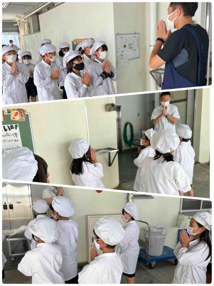 給食当番は、しっかりと大きな声であいさつをしてから、食缶などを受け取っていました。また、気を付けながら運んでいる様子を見て、感心しました。