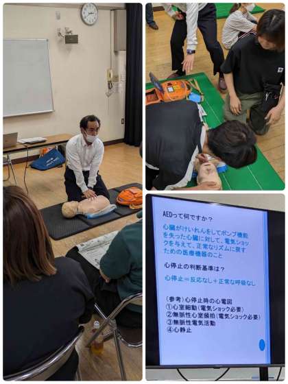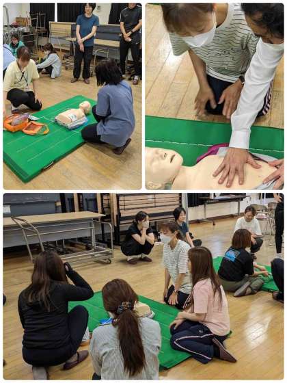 胸骨圧迫やAEDの使い方など、救急救命について学びました。