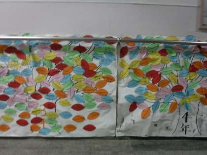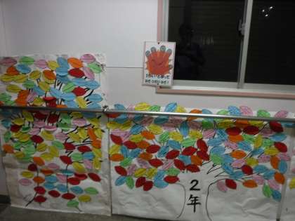 11月19日(木)校舎を回っていると、職員室前に色とりどりの木が立ち並んでいました。読書週間に取り組んできた「読書の木」です。