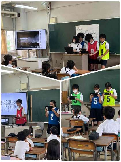 6年生が勉強している平和学習について、たてわり班のメンバーに発表を行いました。