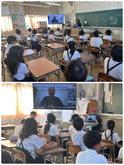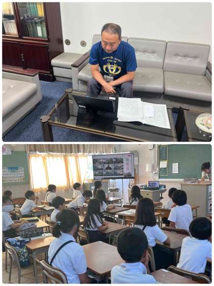 1時間目に、オンラインで終業式を行いました。子どもたちは、集中して校長先生の話を聞いていました。