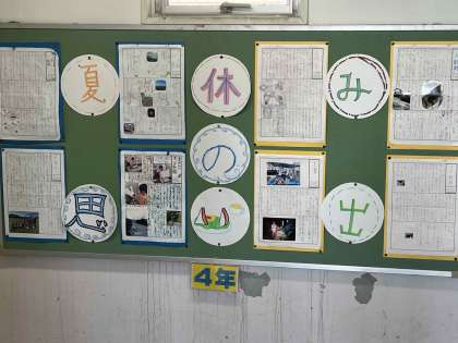 4年生は、夏休みの思い出新聞が掲示されていました。