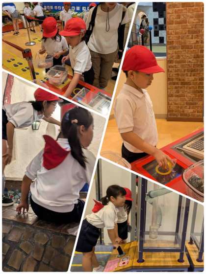 子どもたちは、全身を使って遊んだり、展示を見たりしながら過ごしていました。また、おいしいお弁当を食べて、友だちと楽しくお話もしていました。