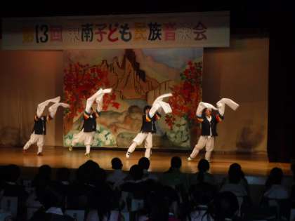 本校からは、4名の子どもたちがこの日のために練習を積み重ねてきた「ハンサムチュム(ハンサムの舞)」を発表しました。