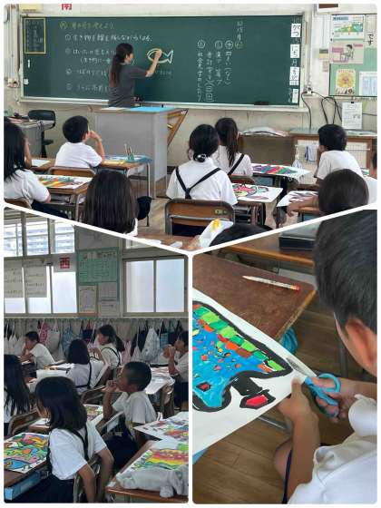 「海の色を考えよう」をめあてに頑張っている3年生。