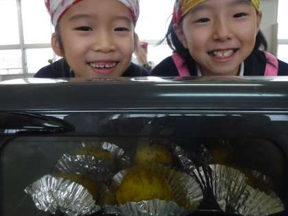 様子をのぞきに行くと、「先生の分もあるから、一緒に食べよう!」と誘ってくれました。すべての班が焼きあがるまで、じっと待って、全員そろっていただきますをしました。