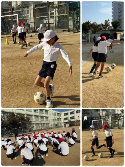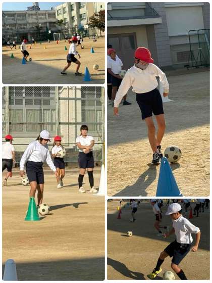 コーンの間をぬけながら、素早くドリブルできるように頑張りました。