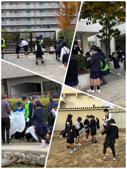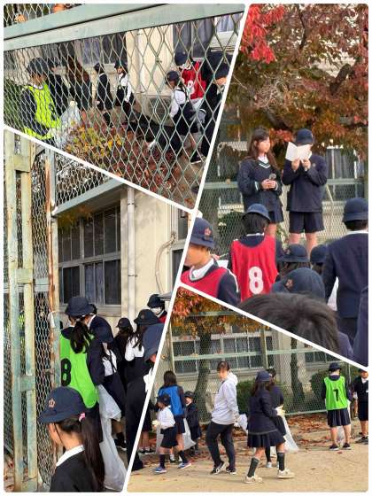 落ち葉がたくさんあるので、たてわり班で場所を決めて掃除をしました。
