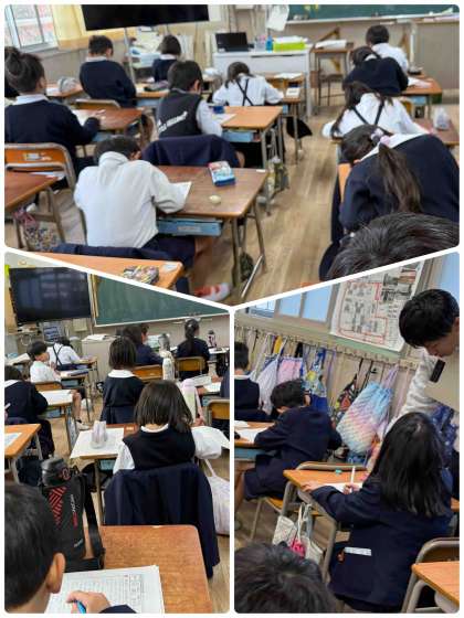 2年生では、プリントを使って復習をしたり、漢字テストをしたりしていました。