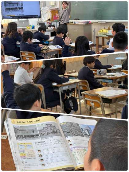 社会 3年2組 1月14日 公開日 2025/01/14 更新日 2025/01/14 学校日記 大阪市の移り変わりについて考えている3年生。 大阪駅の昔の写真を見比べて、違いについて考えました。 いいね(0)