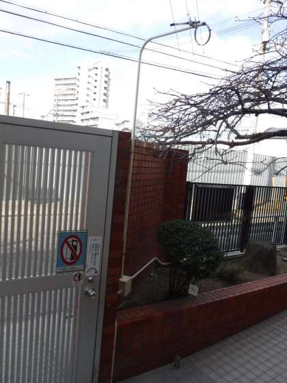 先日お手紙をお配りしてお知らせしました登下校メール配信システム「ミマモルメ」用に、玄関に新たにアンテナが立ちました。
