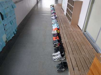 保健室前にきれいに靴をそろえています。