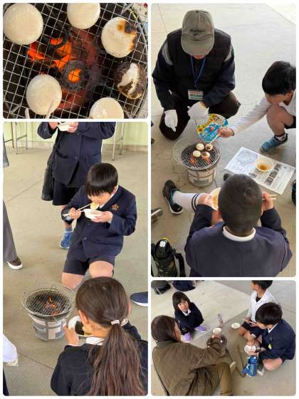 そこで、地域の方に来ていただき、七輪を使ってお餅を焼く活動をしました。