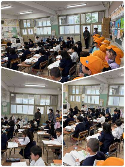 2時間目に、学校見学で西喜連保育所の年長さんたちが来ました。