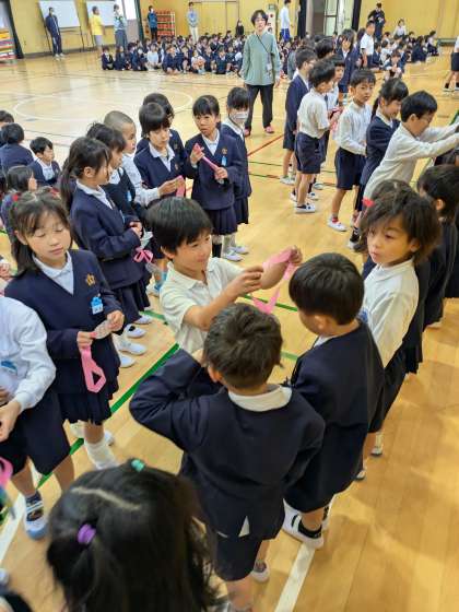 喜連西小学校の校歌を歌ったり、2年生からメダルのプレゼントがあったりと盛りだくさんの内容でした。