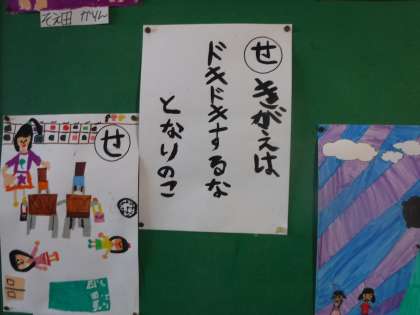 思い思いのカルタをつくって貼っていました。広い場所で自分たちが考えてつくった大きなカルタを使って、カルタ大会をしたらきっと楽しいでしょうね。