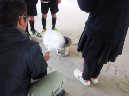 2月12日(金)5時間目にピロティで、3年生が昔の暮らしの学習の一環で、七輪体験学習をしました。