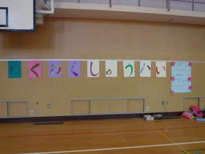 2月18日(木)講堂で、1年生が西喜連保育所とカリーノ保育園の子ども達を招いて、「わくわく集会」をしました。