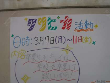 メラミン・スポンジを各学級に配って、いろんな場所をピカピカにしていっています。