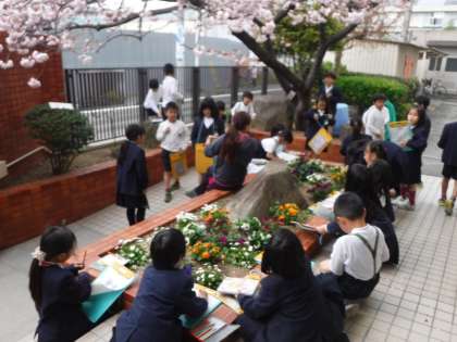 2年生が花を愛でていました。
