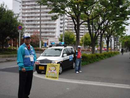青パトに乗って朝いつも旗を持って子ども達が登校するのを見守ってくださってます。