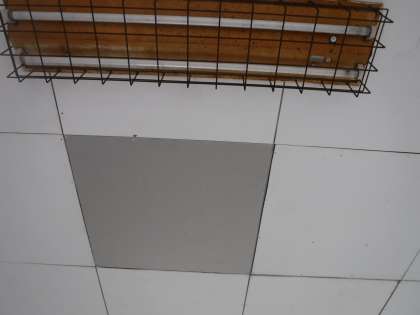 5月10日(火)ピロティの天井のボードを管理作業員さんお2人で貼り替えてくださいました。