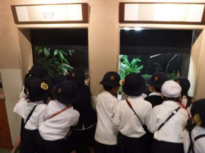 このお天気だったので、他の幼稚園や小学校も少ないかと思いきや結構な小学生や幼稚園の団体が来ていました。本校に勤務していた東山先生とも偶然会うことができました。