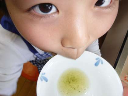 お湯を沸かし、お茶の葉を入れてお茶を味わいました。