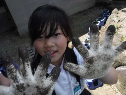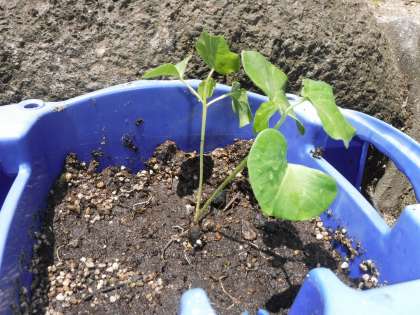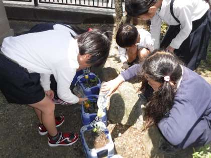 5月17日(火)新体力テストを受けている中、3年生は綿の苗を植えていました。