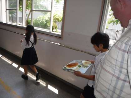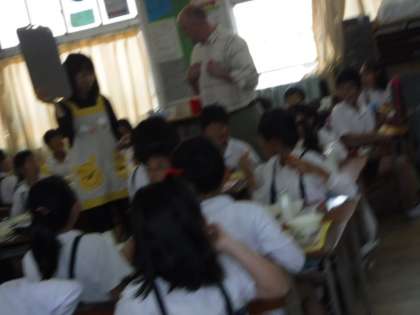 各学級に順番に回って、LUNCHを食べながら交流を広め深めています。