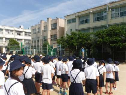今日の全校朝会で、生活指導部から今月の生活目標として、「遊びを工夫しよう」について話がありました。